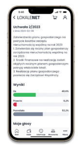 - głosowanie nad uchwałami i ankietami bezpośrednio w aplikacji