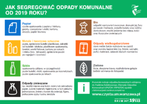 Obowiązuje system zbiórki odpadów komunalnych z podziałem na 5 frakcji: